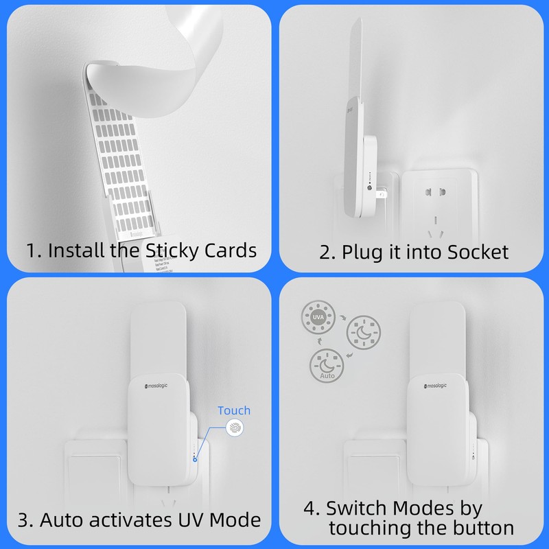 - Mute Mosquitoes Killer: In contrast to bug zappers, the glue card capture system is completely natural smells. The small, quiet design also protects your eyes from the direct exposure to ultraviolet light. The package includes 5 pieces of glue boards for replacement.