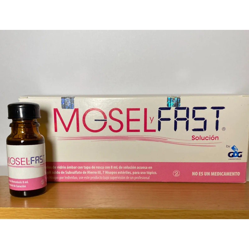 Moselyfast solución con Monsel, solución hemostática tópica, control de sangrado clínico, Monsel para cicatrización, solución para heridas médicas, producto médico para sangrado, Monsel caja 3 frascos 8ml, solución tópica hemostática profesional, producto para uso médico, solución para cirugía menor