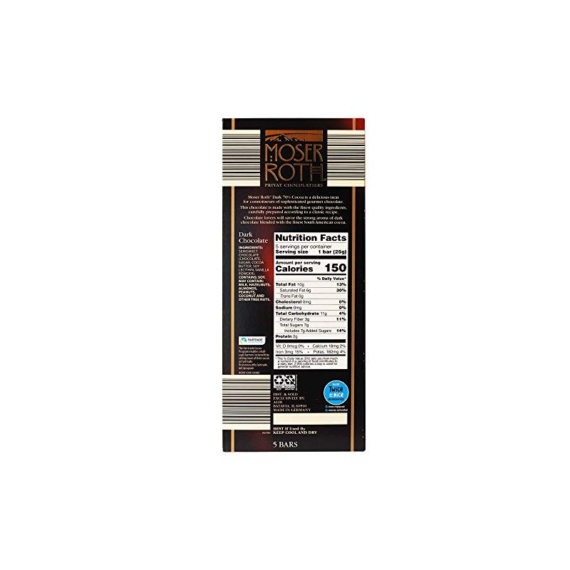 Moser Roth 70% Premium Fine German Dark Chocolate Bars. (Pack of 10)