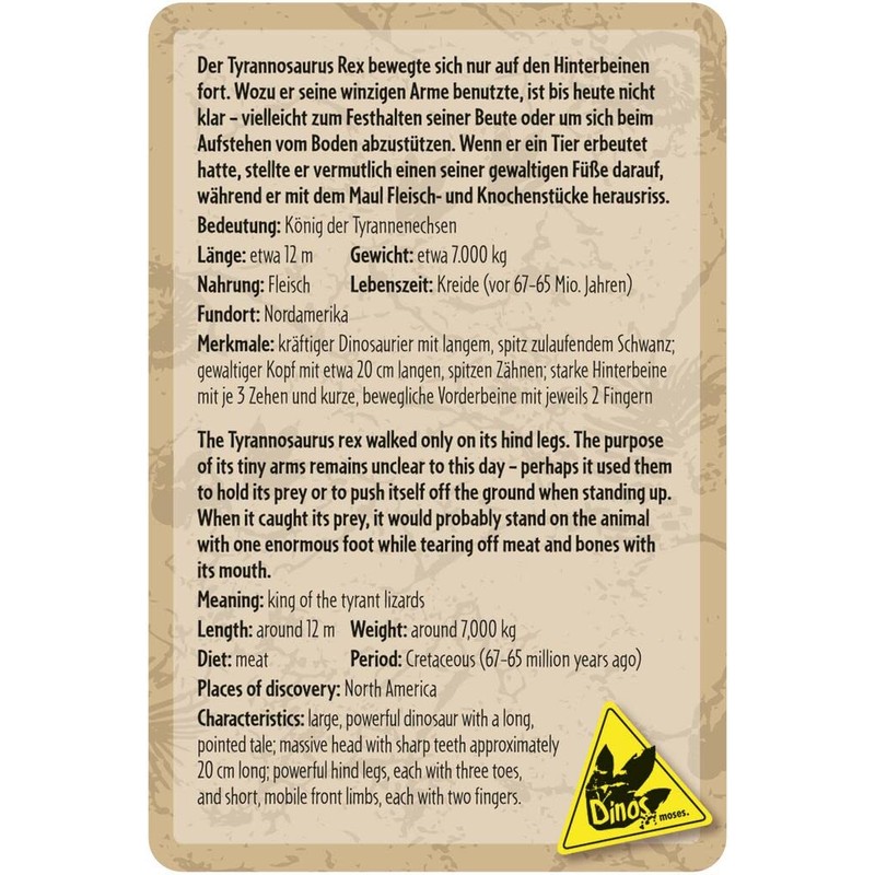 - Play and learn: In addition to the dangerously roaring Tyrannosaurus Rex figure for playing, small dinosaur researchers learn all the important information about their favourite dinosaur in a letter
