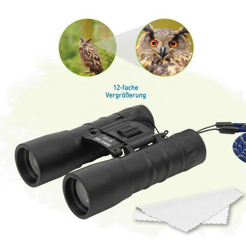 Whether the pattern of the feathers or the shape of the magnificent antlers - with the impressive 12x magnification, children will not miss any detail. The children's binoculars come with practical accessories such as carrying strap, bag and cleaning cloth. So the binoculars are always with you for all outdoor activities, whether hiking, camping or just playing in the garden. The compact design and robust workmanship make the lightweight children's binoculars the ideal companion for all adventures in nature.