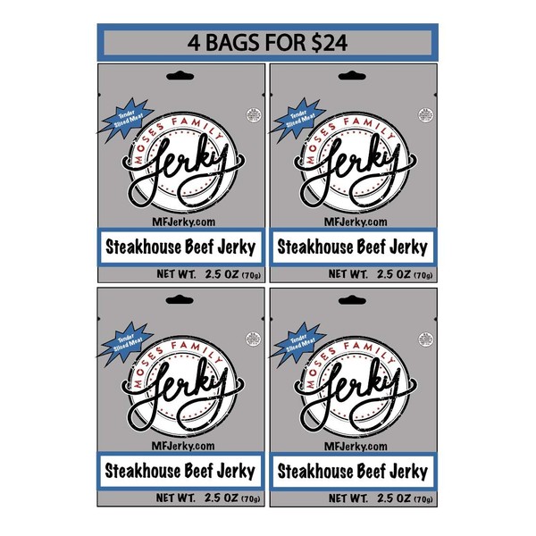 Moses Family Jerky, Steakhouse Beef Jerky Multi Pack, 2.5 Ounce (Pack of 4), Bite Sized Sliced Meat
