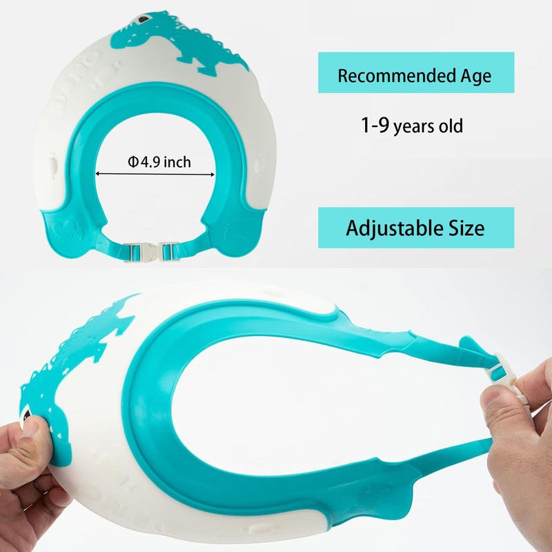 - Adorable Dinosaur Shape: Our shower visor for kids features an adorable dinosaur design that will instantly capture your baby's attention and bring endless imagination and fun, and make your little one fall in love with bathing time