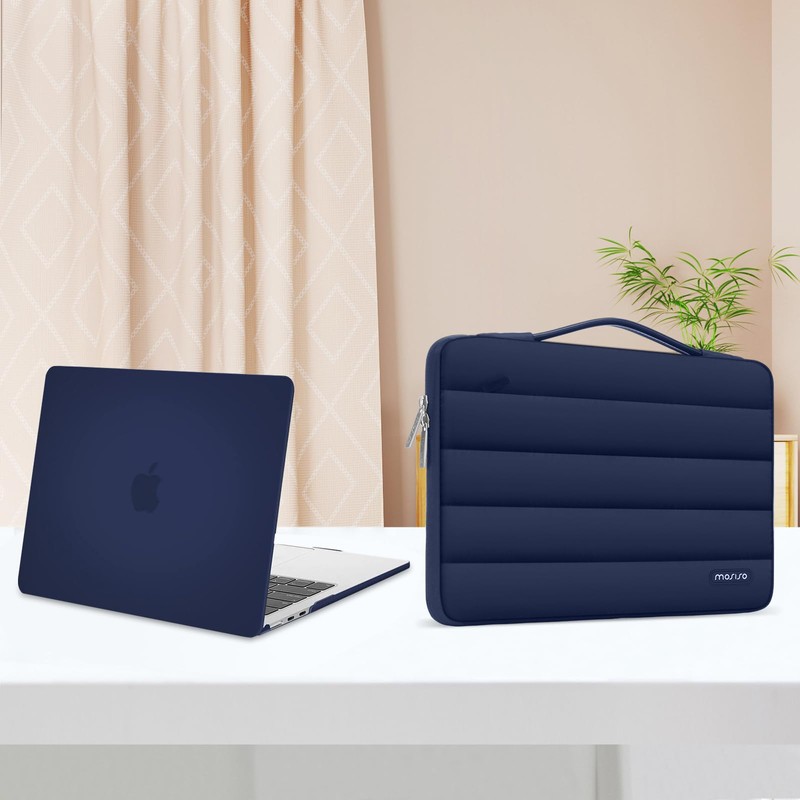 MOSISO Compatible with MacBook Air 13 inch Case 2024 2023 2022 M3 A3113 M2 A2681, Plastic Hard Case&Puffy Sleeve Bag&Keyboard Cover&Webcam Cover&Screen Film for MacBook Air 13.6 inch Case, Navy Blue