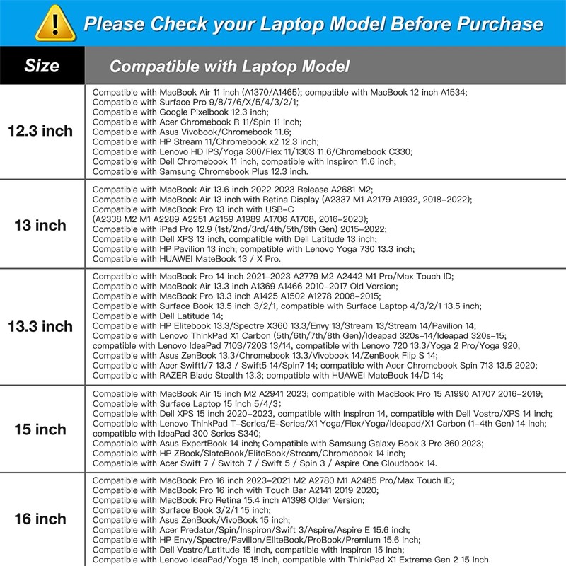 - Compatible con MacBook Pro 14 pulgadas 2024-2021 M3 A2918 A2992 M2 A2779 M1 A2442 Pro Max con Touch ID, compatible con MacBook Air 13 pulgadas A1369 A1466 2010-2017, compatible con MacBook Pro 13 pulgadas A1425 A1502 A1278 2008-2015; Compatible con Surface Book 3/2/1 13. 5, compatible con Surface Laptop 4/3/2/1 13.5; compatible con Dell Latitude 14; compatible con HP Elitebook 13.3/Spectre X360 13.3/Envy 13/Stream 13/Stream 14/Pavilion 14; compatible con Lenovo IdeaPad 13/14.