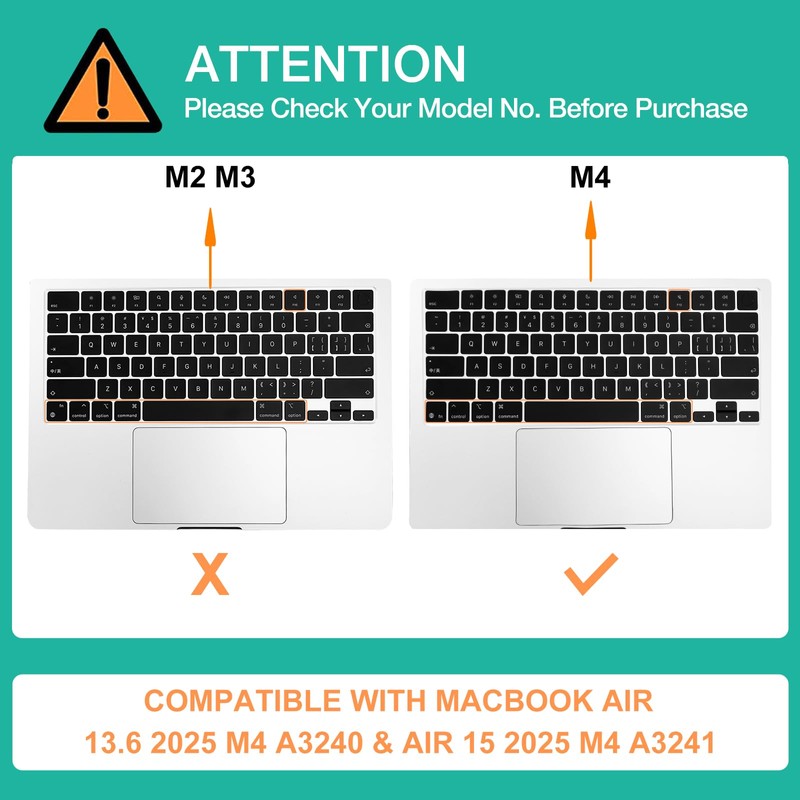 - Designed ONLY to be compatible with MacBook Air 13.6 inch M4 chip 2025 release (model: A3240) & compatible with MacBook Air 15.3 inch M4 chip 2025 release (model: A3241).