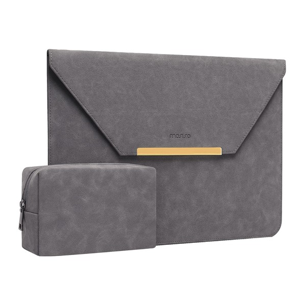 MOSISO Laptop Case Compatible with MacBook Air 13 M3 A3113 M2 A2681 M1 A2337 A2179 A1932/Pro 13 M2 M1 A2338 A2251 A2289 A2159 A1989 A1706 A17084 Matt PU Leather Flap Case with Small Case, Grey