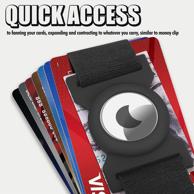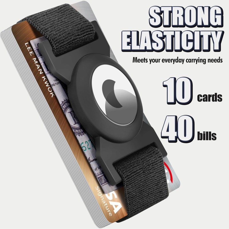 MOSIYEEF Elastic Money Band with Airtag Holder - Thick Bulky Wallet Alternative for Daily Use and Travel Use - Airtag Case Money Strap for Credit Card - Simple Patent Design - Money Clip Alternative