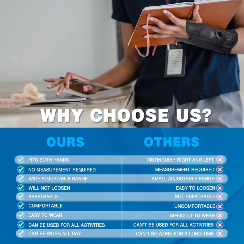 - 手首用スプリント1本で問題を解決。測定する必要はありません。左または右を選択する必要はありません。バスケットに追加してチェックアウトするだけで、手首のストレスと痛みがすぐに緩和されます。