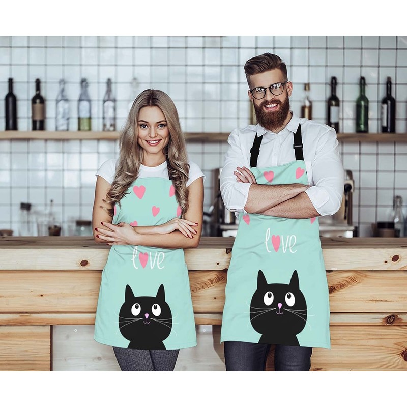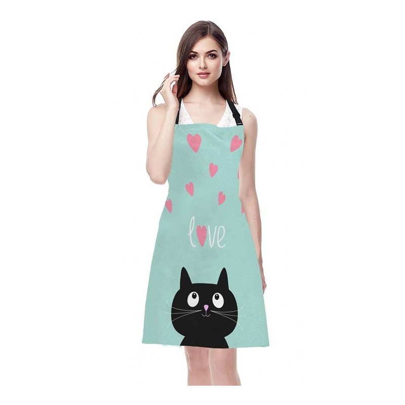 - Moslion Black Cat Apron Pink Hearts And Cute Cartoon Cat Blue Background Apron Adjustable Neck Bib Apron For Men Women Suitable For Kitchen Cooking Waitress Chef Apron
