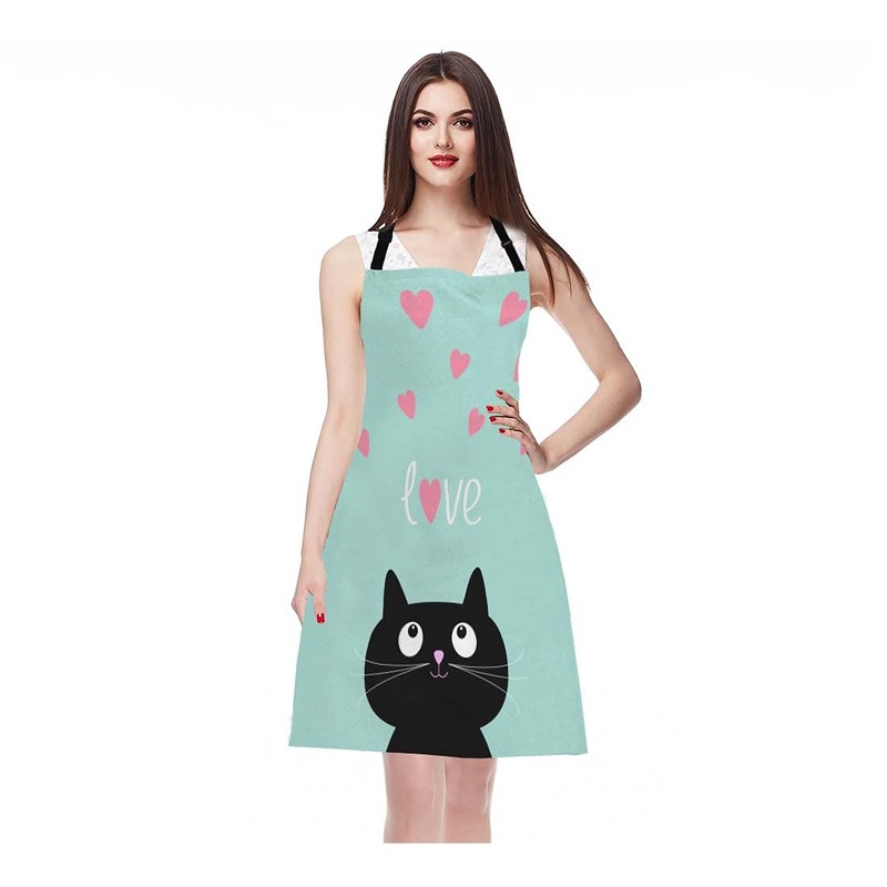 - Moslion Black Cat Apron Pink Hearts And Cute Cartoon Cat Blue Background Apron Adjustable Neck Bib Apron For Men Women Suitable For Kitchen Cooking Waitress Chef Apron