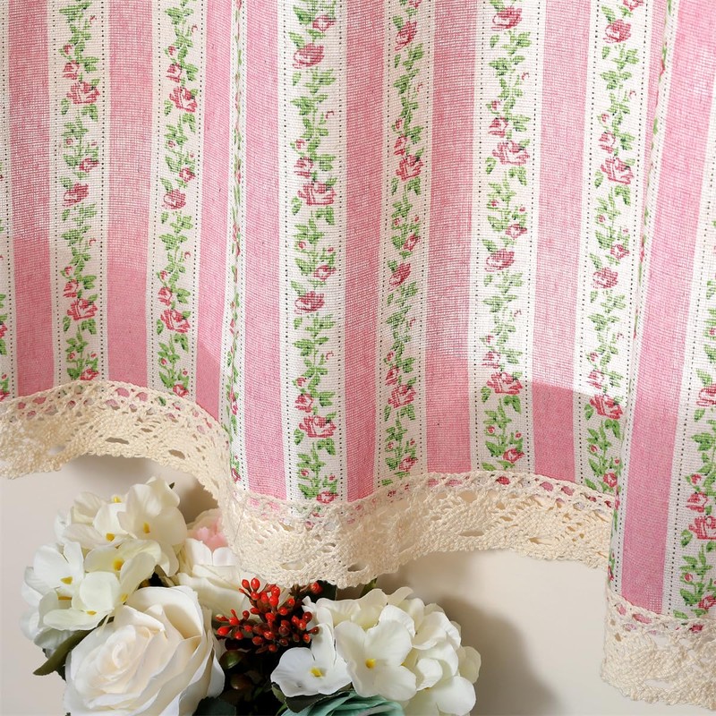 Moslovstar Farmhouse Cotton Linen Tier Curtain 36 Inch Long Elegant Floral Lace Window Treatment Kitchen Bathroom Short Curtain, 1 Panel, Pink Vine Flower