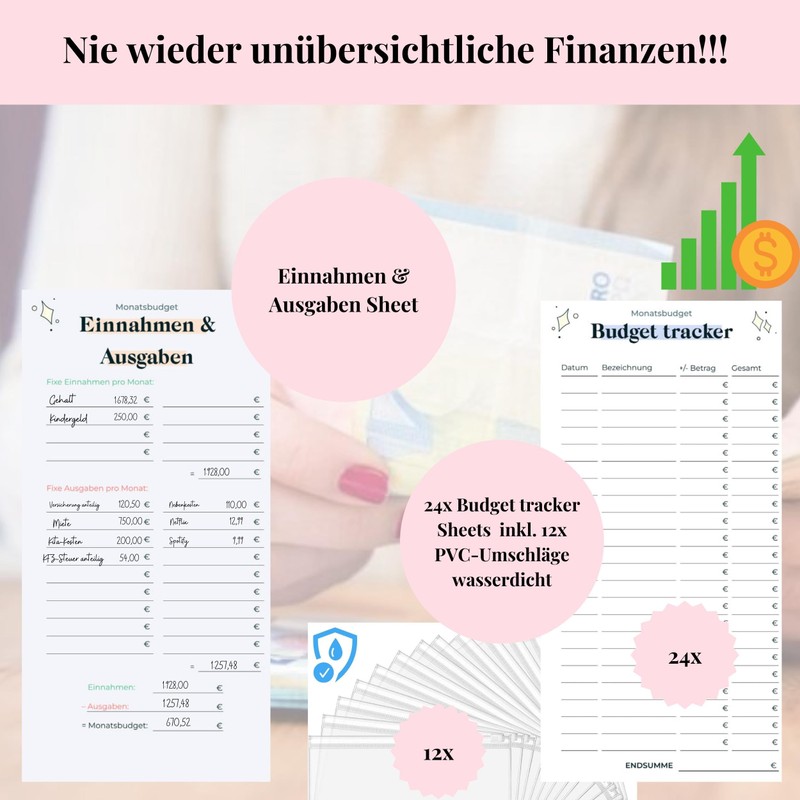- 1 x overview sheet printed on the side for clearly recording your income and expenses in German.