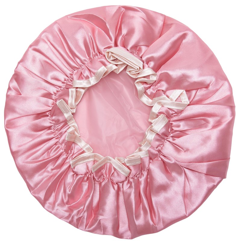 - 1. Premium Materials: Our shower caps are made of high-quality satin. Satin is smooth, soft, and extremely gentle on your gorgeous hair. The inner layer features waterproof PEVA material. It effectively keeps moisture at bay, ensuring your hair stays dry throughout your shower.