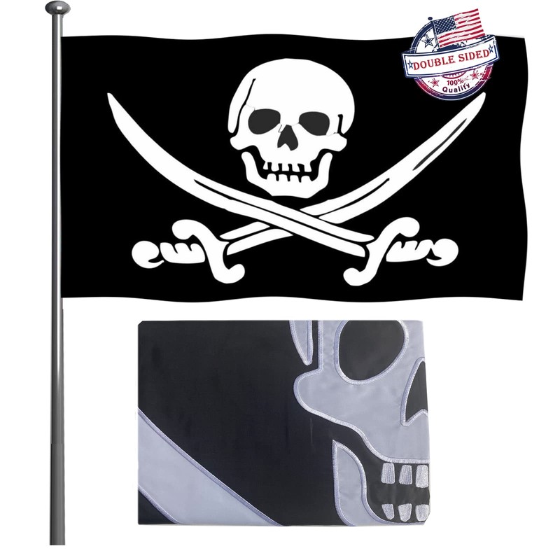 - Double Sided Design: The flag is double sided with an embroidered pirate skull and crossbones design on both sides for maximum visibility.