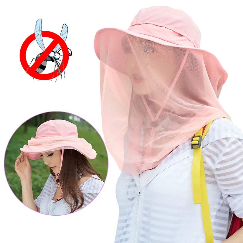 Mosquito Head Net Hat, Safari Hat Sun Hat with Mesh Protection from Insect Pink