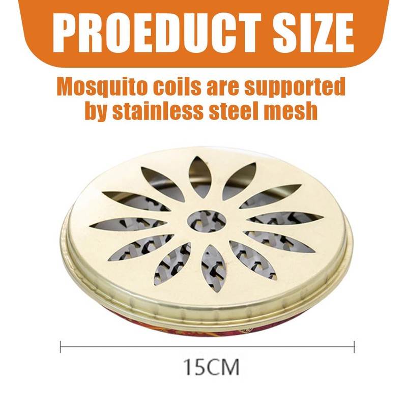 - Perfect design: the mosquito spirals are supported by a stainless steel mesh, the metal has good heat dissipation performance. The serrated mesh design inside the disc is more stable and not easy to break, which makes the mosquito repellent incense better contact with the air. Due to the sawn design, it burns out completely. Please be careful when replacing the mosquito coil.