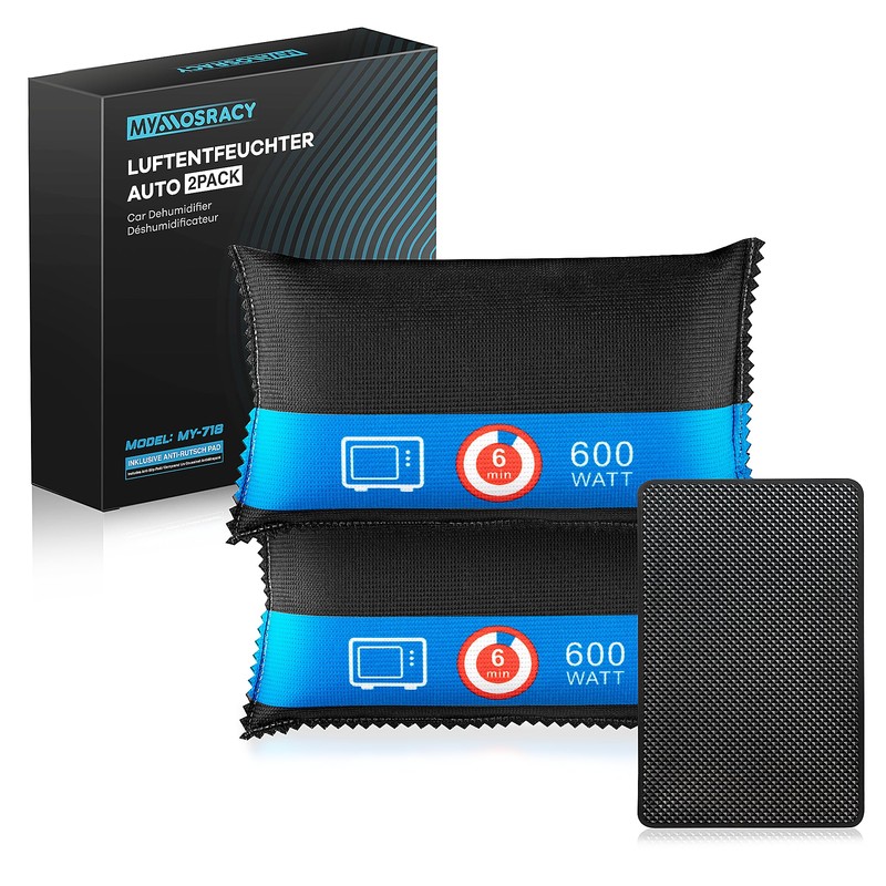 MOSRACY Car Dehumidifier, 2 x 400 g, Reusable Car Dehumidifier Bag, Against Condensation and Moisture for Clean Windscreens, Car Dryer Cushion for Fogged Car Windows