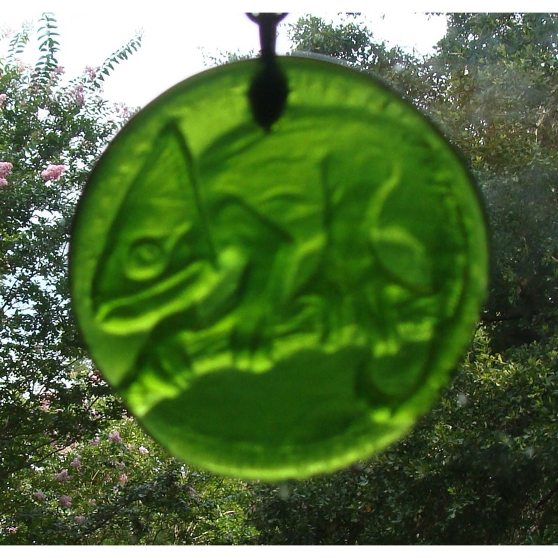 Moss Green Chameleon Handmade Recycled Wine Bottle Bottom Sun Catcher