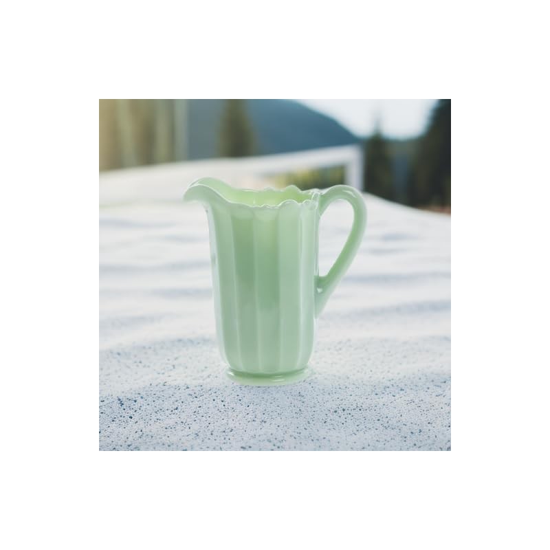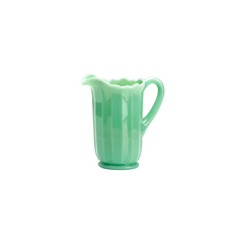 Add a touch of flair to your kitchen countertops with this panel pitcher measuring jar from Mosser Glass. Made of glass in a stunning green jadeite, this measuring jar will catch the eye of anyone. Store with peace of mind as this measuring jar features a lid, keeping your contents protected. Made in the USA, simply hand wash between uses.