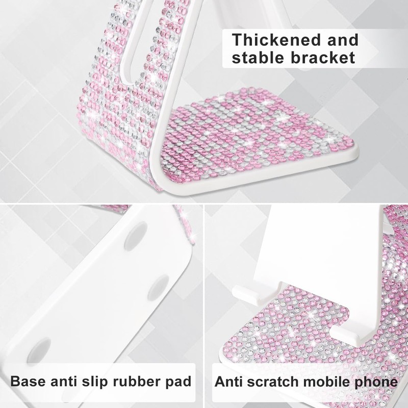 - ?Universal Compatibility:This Luxury Bling Bling Rhinestone phone stand compatible with iPhone and all smartphones between 4 and 8 inches, tablets, e-readers, and even credit cards. such as iPhone 15 Pro Max /14 Plus/13/12/11, Samsung Galaxy and all smartphones.Anti-slip rubber pads ensure stability.