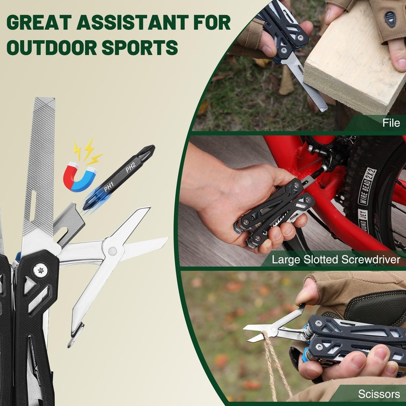 - 22-in-1 Multi-Tool:This versatile tool features pliers, a bottle opener, a saw, a flat screwdriver, scissors, a file, and a ruler. It is perfect for both indoor and outdoor use, catering to various needs.