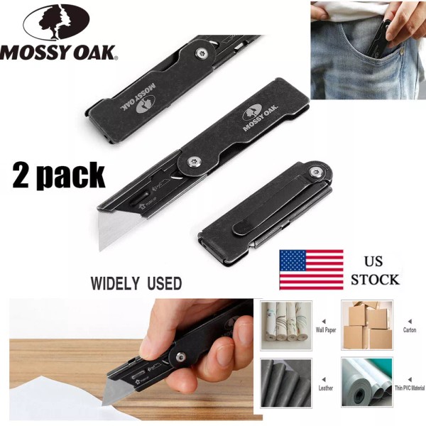 MOSSY OAK Folding Pocket Utility Knife Set Quick Change Box Cutter Stone-washed