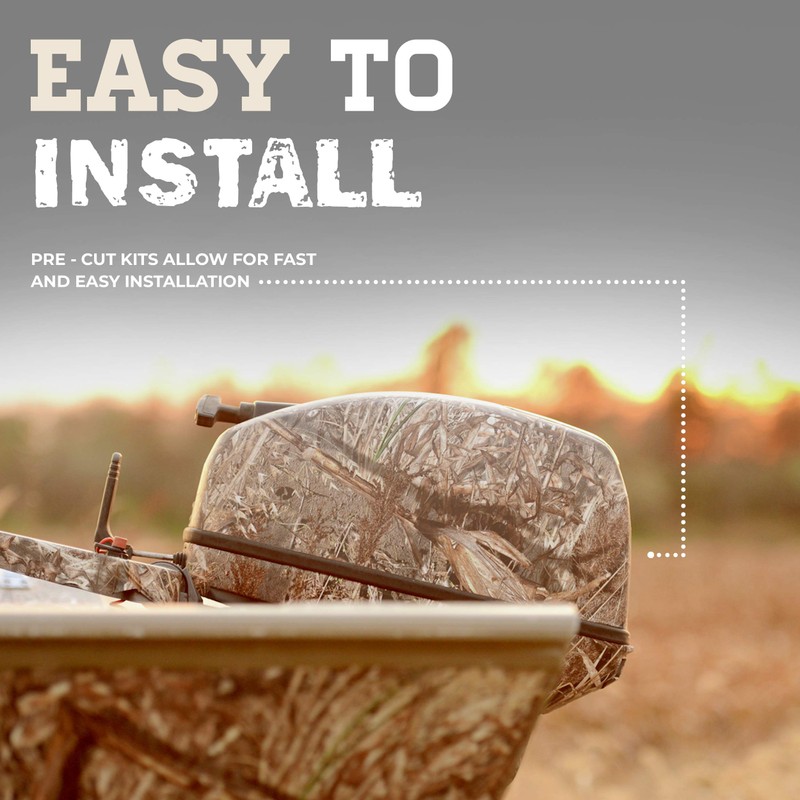 Mossy Oak Graphics Duck Blind 20 HP or Less Boat Motor Camouflage Kit is used for covering all 2 and 4-cycle boat motors. It comes standard in 4 different sizes and includes 5 precut pieces for the motor case and 3 precut pieces for the lower unit.