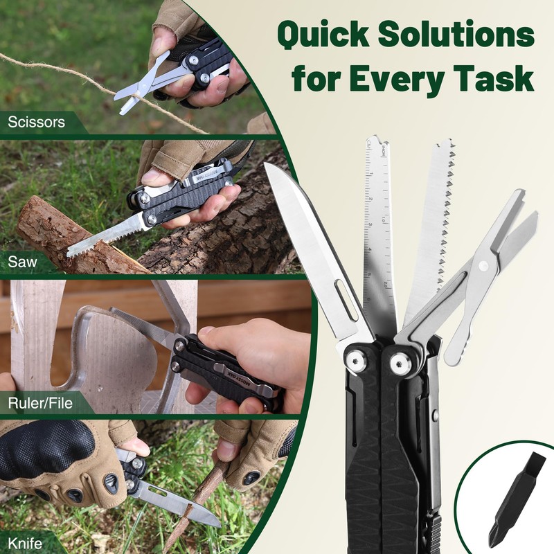 • 17-in-1 Essential EDC Tool: This multitool packs 17 essential functions into a compact, lightweight body—featuring pliers, knife, wire stripper, box cutter, scissors, screwdrivers, saw, ruler/file, and more. Whether you’re at home, on the job, or deep in the outdoors, our EDC multi tool puts the right tool in your hands at the right time.