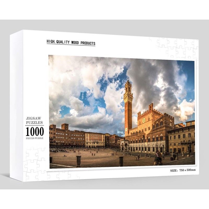 Most Beautiful Square in The World Siena Tuscany Toscana Jigsaw Puzzles for Adults 1000 Pieces Wooden Puzzle Thick and Durable Puzzle DIY Home Decor