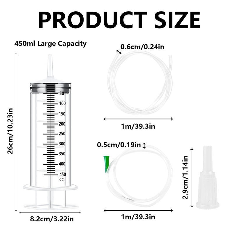 • Large Capacity: You will receive 1 x 450ml Large Syringe, 1 x Flexible Tube 1m, 1 x Flexible Tube with Green Head. The 450ml capacity is perfect for tasks requiring substantial liquid volumes, minimizing interruptions for refills, and ensuring you can complete your work efficiently.
