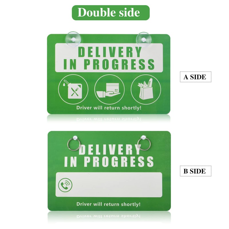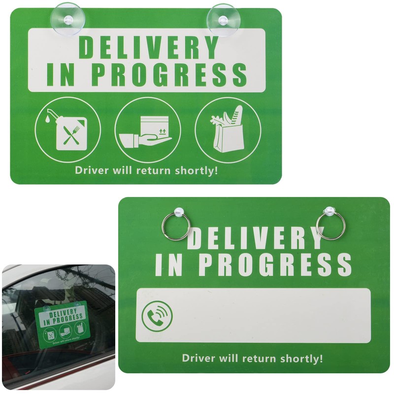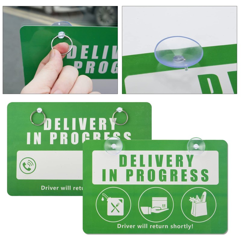 Motain Delivery In Progress Sigh For Delivery Driver Temporary Parking, 2 Pack 6 * 9" PVC Panel Sign With Suction Cup (Green)