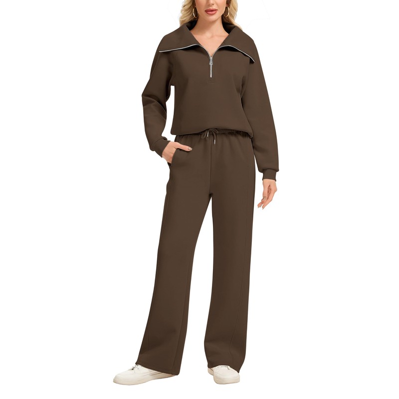 • Functional & Stylish Design: featuring unique contour lines that flatter your figure, the half-zip sweatshirt offers an adjustable neckline for versatile styling—wear it open for a relaxed look or zipped up for a polished look; easy to put on and take off, ideal for workouts; the matching palazzo pants include a drawstring waist for a customizable fit and two side pockets to keep essentials handy