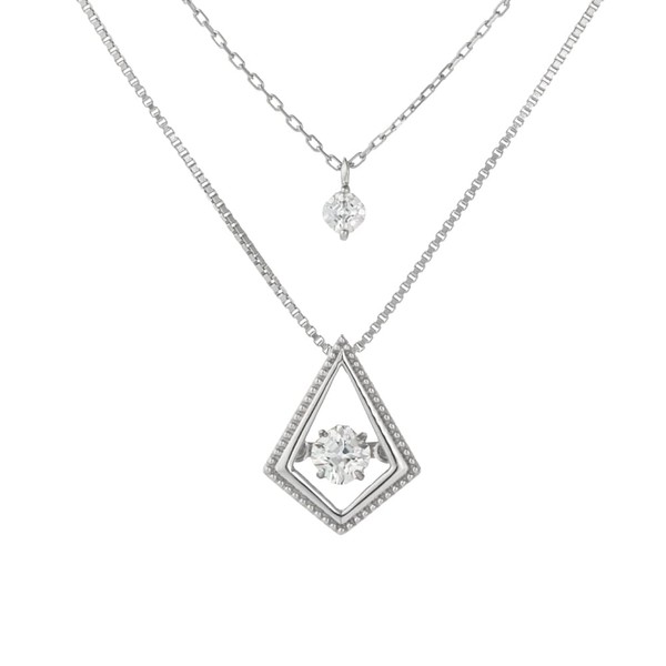- [Material] Base metal: SV925 / Plating: Rhodium plating; Center stone size: CFCZ 0.2 inches (4.0 mm) x 1 pc; Side stone size: CFCZ 0.1 inches (3.0 mm) x 1 pc; Chain type: 2 rows (Venetian and Azuki )
