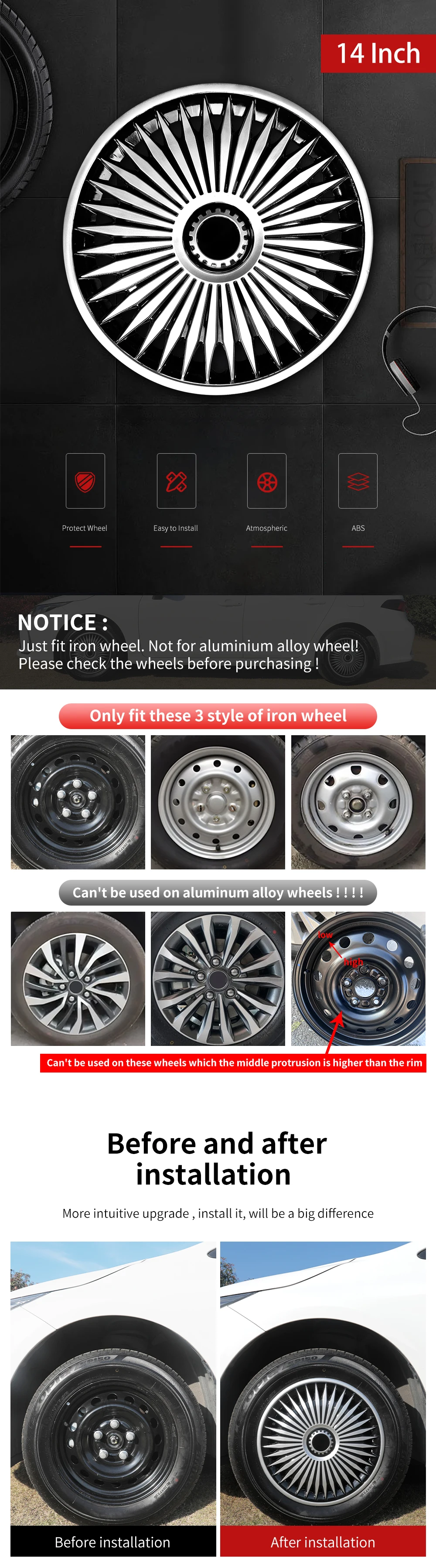- Compatible Wheel Diameter: 14 inch