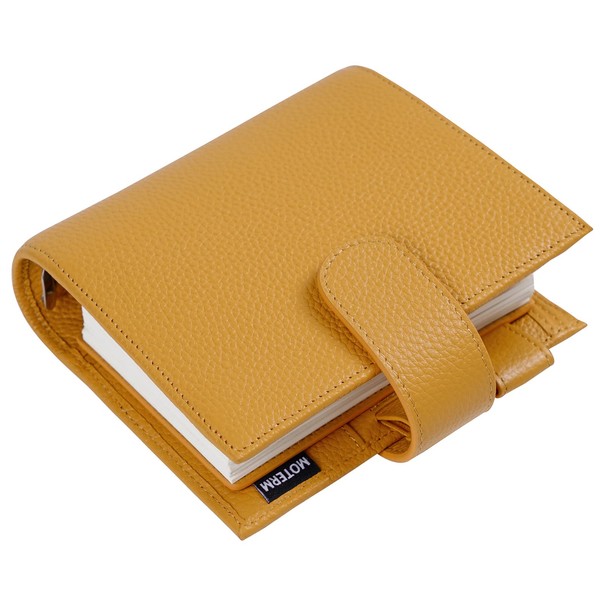 Moterm Pocket Luxe Ring Planner - Genuine Leather Binder Organiser (Pebble Mustard, 30 mm Ring)
