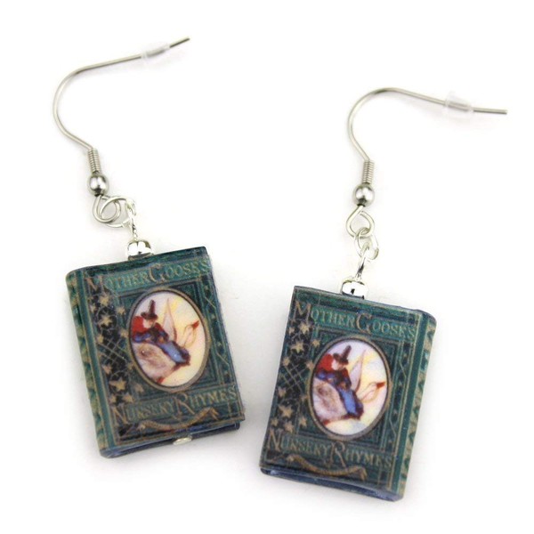 Mother Goose Nursery Rhymes Clay Mini Book Hypoallergenic Dangle Hook Earrings by Book Beads