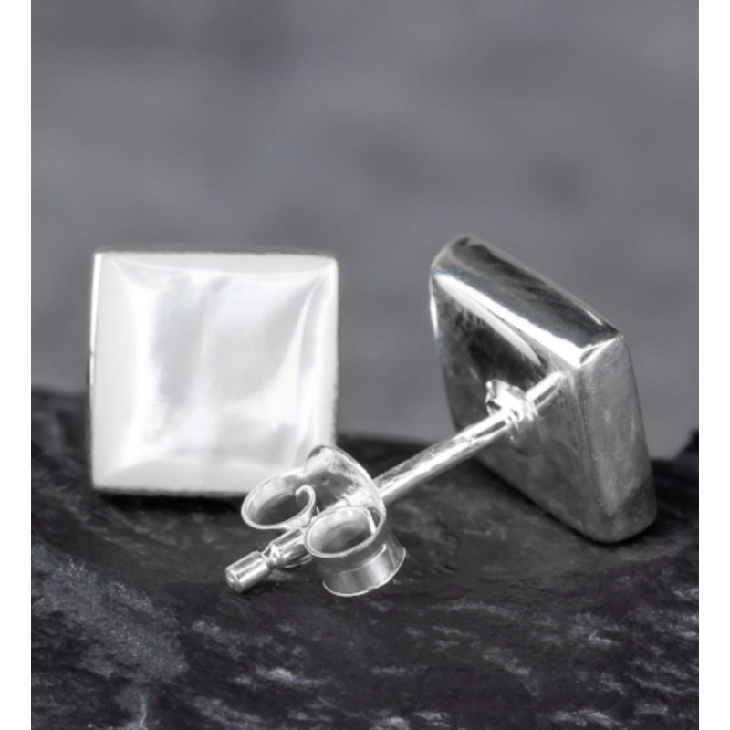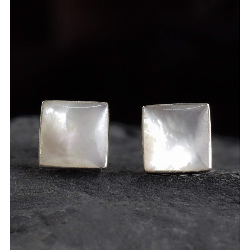 Mother of Pearl Stud Earrings Square - 925 Sterling Silver - Square Earrings with Gift Box