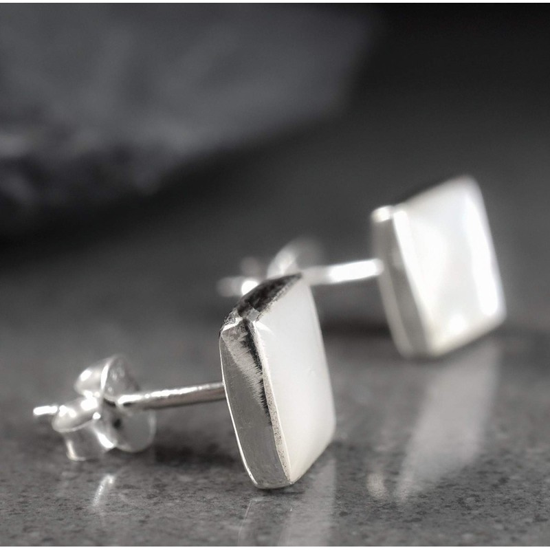 ✿ Box contents: real silver stud earrings square with mother of pearl comes with gift box.