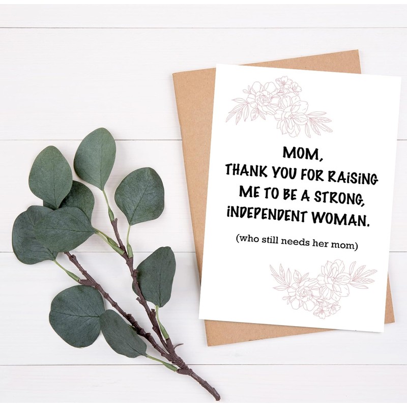 Mother's Card, Heartfelt Card for Mother,Thank You for Raising Me to be a Strong Independent Woman. Who Still Needs Her Mother