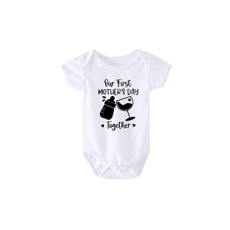 Mother’s Day Baby Bodysuit Outfits Short Sleeve Rompers Boys Girls (0-3 Months, Our First Mother’s Day together-White)
