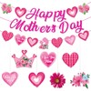 Mother's Day Banner Mother's Birthday Party Decorations Red Happy Mother's Day Banner Heart Pendants