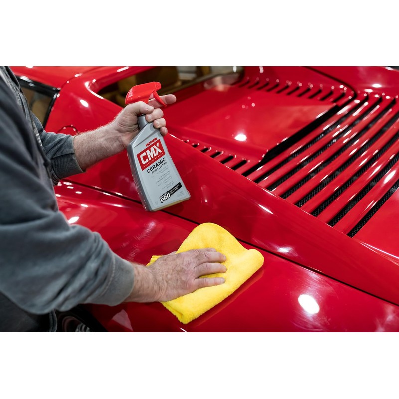 Introducing Mothers CMX Ceramic Spray Coating, an affordable, user-friendly, professional grade, ultra-durable, super-hydrophobic protection formula. Just spray on and wipe off, with this game-changing SiO2 (Silicon Dioxide) and TiO2 (Titanium Dioxide) blend. This powerhouse combo provides ultra long-term protection from the elements and relentless water beading, without sacrificing true optical clarity, extreme depth and that signature ceramic glass-like liquid-gloss appearance. Use as a stand-alone product, or as a booster over your existing sealant or ceramic coating. Washing and caring for your vehicle has never been easier. Cures in 24 hours (do not get vehicle wet during curing period).