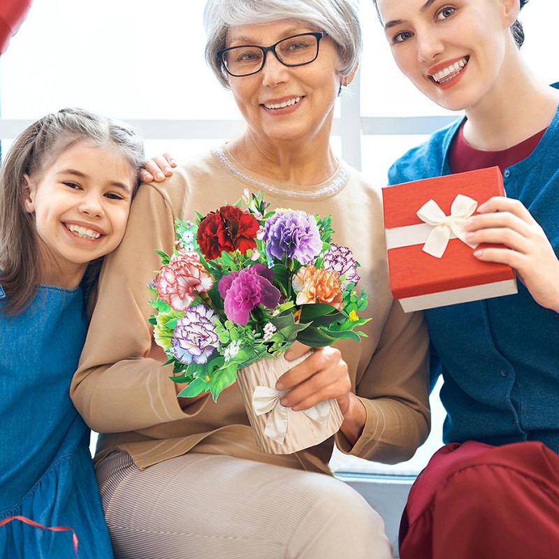 Mothers Day Card, 3D Pop Up Card Mothers Day Cards for Mum, Mother Birthday Cards, Handmade Carnation Pop Up Flower Bouquet Greeting Cards with Blank Message Card & Envelope for Mum, Grandma, Wife