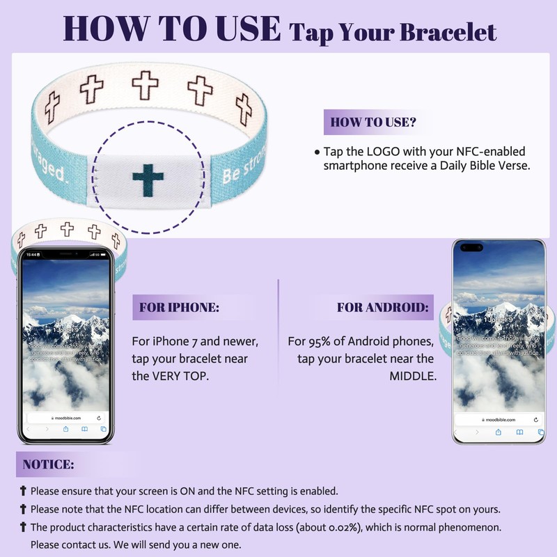 • [NFC Bible Verse Bracelet - Daily Scriptures at Your Fingertips]: Featuring advanced NFC technology, this prayer bracelet connects to a dedicated website via your smartphone, offering 1000+ daily bible verses and 10 mood-specific scriptures. Its elastic design ensures a comfortable fit for wrists as small as 7 inches, suitable for everyone.