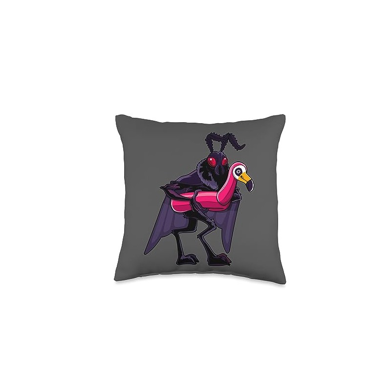 Mothman Pool Party Pink Float Flamingo Funny Cryptid Monster Throw Pillow