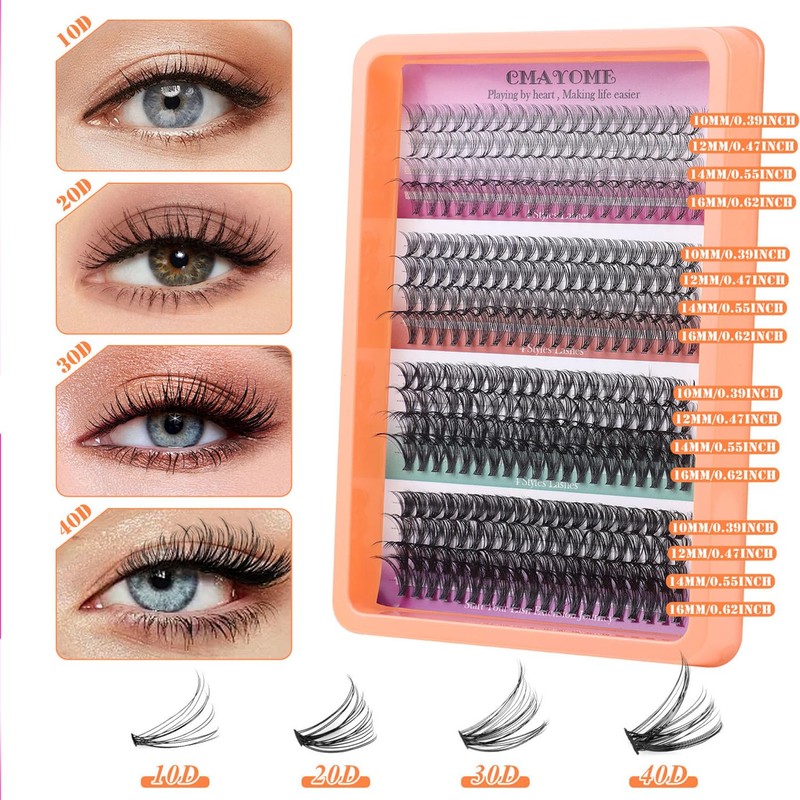 - Premium Cluster Lashes – Includes 50D, 60D, 80D, and 100D lash clusters (8-16mm lengths) for customizable volume and length. Perfect for daily wear or special occasions