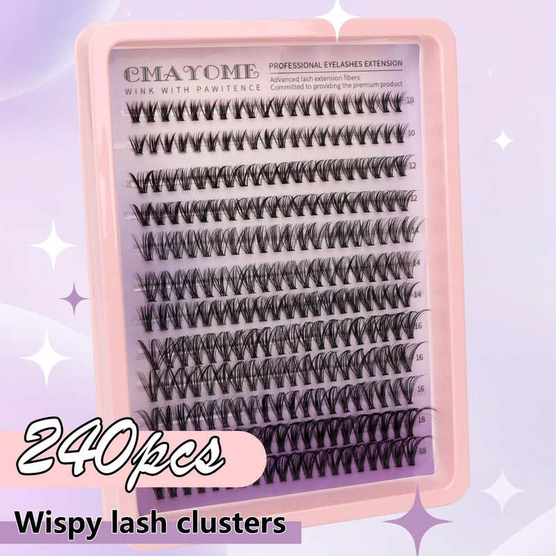 MOTIBACK 240PCS Natural Cluster False Eyelashes with 10-18mm Individual Eyelashes for Effortless Volume Eyelash Clusters Beginner Friendly Cat Eye Lashes Natural Lashes for Everyday Glam SET-388