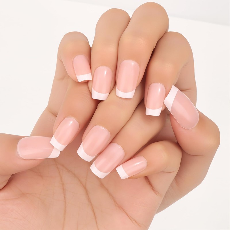 - Beautiful french tip false nails for a touch of elegance: Crafted with meticulous attention to detail, our elegant kiss nails are designed in the classic French style, combining simplicity and sophistication. The specially blended soft pink seamlessly blends with the pristine gold tips, creating an appearance that is both natural and chic – perfect for enhancing your own nails