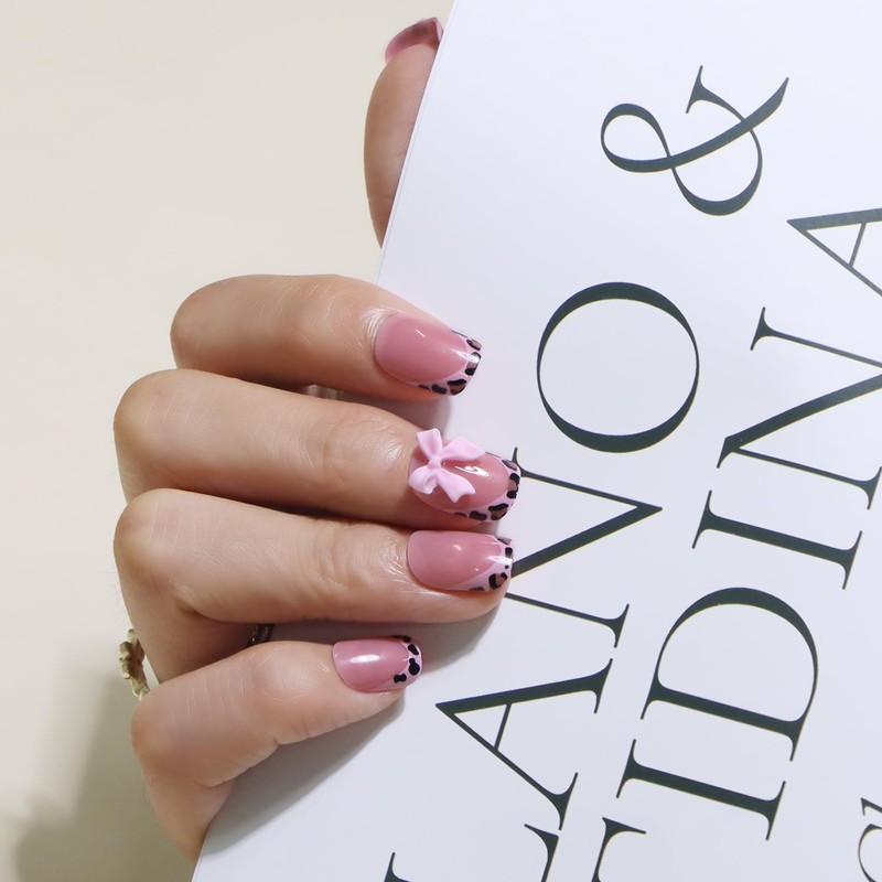 - Trendy French Leopard with 3D Bow - Features chic French tips with leopard print accents and elegant 3D bow details, creating a bold yet sophisticated manicure look